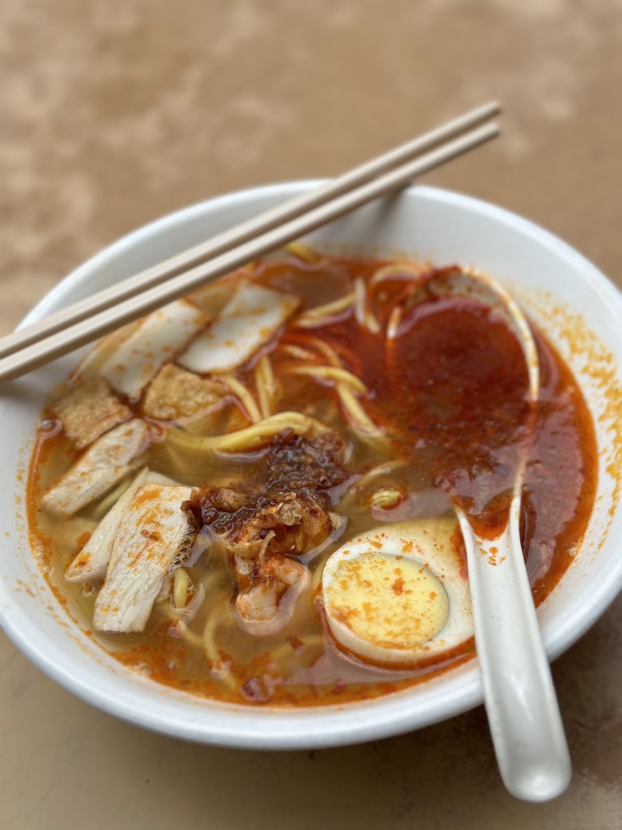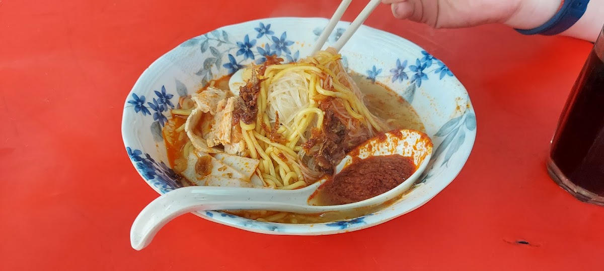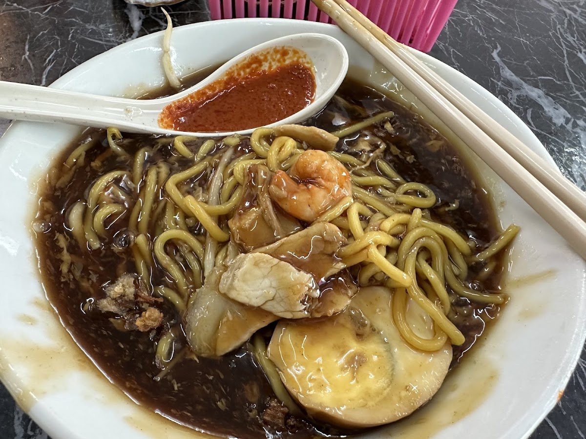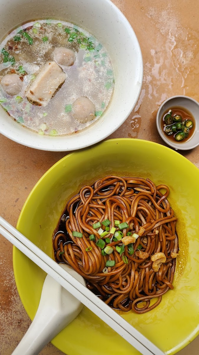We can add vinegar and chopped garlic freely. Prawn, pork skin, lean meat and half egg with fried shallots as garnishing. Expect coffee shop service. Old - school atmosphere. Worth eating.